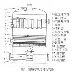 1.2.1旋膜除氧塔內(nèi)部結(jié)構(gòu)見圖1。