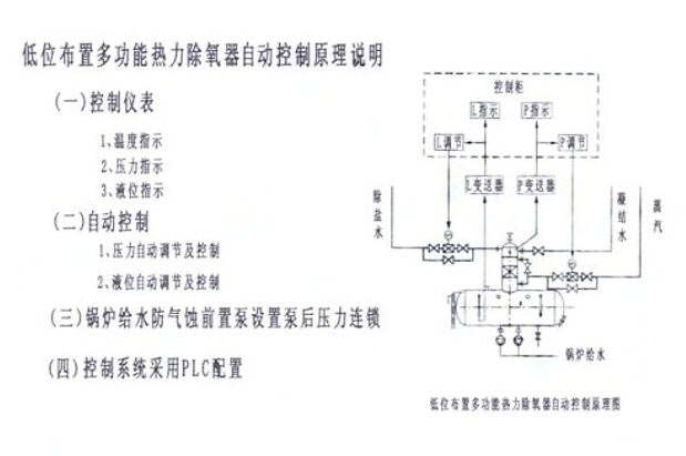 3.2旋膜除氧器應裝設就地和遠方水位計,并具有水位高、低報警裝置和危險高、低水位動作裝置。低位除氧器水位變化控制,當水位降低時,自動啟動軟化水泵(冷凝水泵),給除氧器補水;當水位升高時,水泵自動停止。